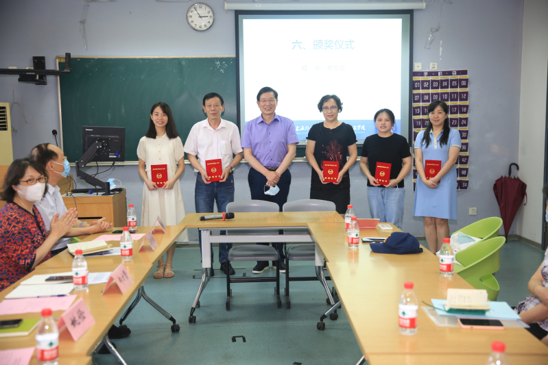 会议第三部分为第3期导师制、第4期“教学设计与开发研修”项目、2021年秋季入职培训(教师专题)进行结业表彰。郑方贤校长为优秀教师代表颁发证书,并合影留念。