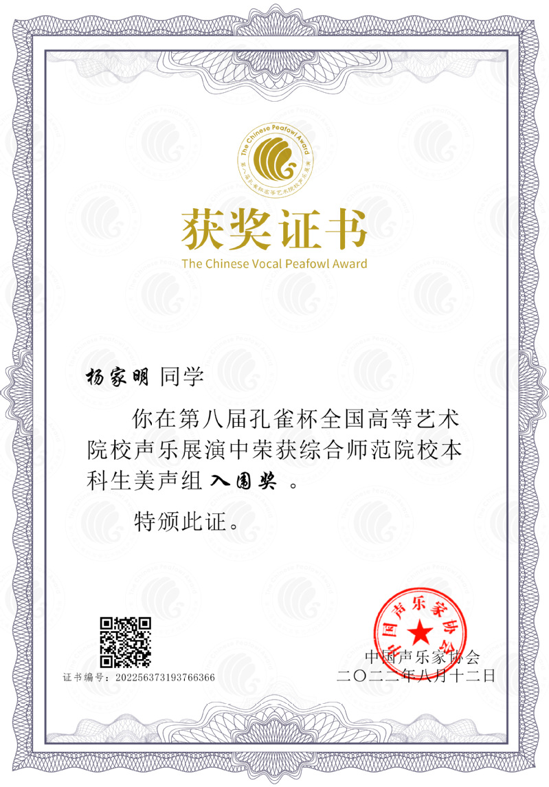 8月8日,新葡的京集团音乐学专业选派2018级方星云、2020级杨家明两位同学在辅导员葛玉华的带领下,赴浙江宁波参加第八届孔雀杯全国高等艺术院校声乐展演,最终两位学生荣获综合师范院校本科生美声组入围奖。