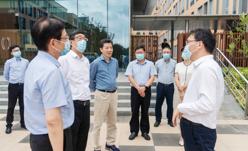 8月31日上午,崇明区副区长施蕾、区教育局副局长陆杰,陈家镇党委书记张振兵、镇长施律、副镇长任盼盼等崇明区领导一行赴上外贤达学院崇明校区调研,新葡的京集团董事长鲍贤嗣、执行董事长李进、校长郑方贤、党委副书记王科及相关部门负责人参与陪同。