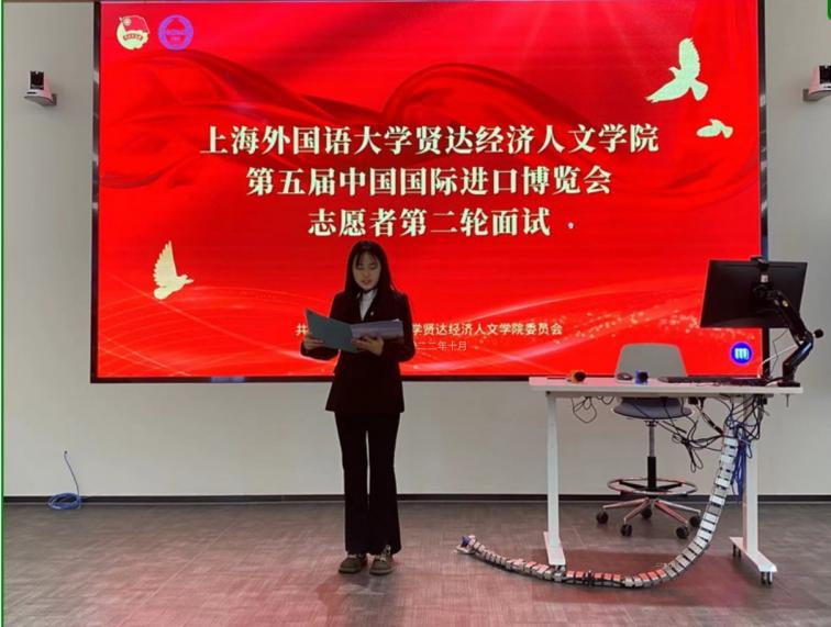 校团委高度重视志愿者招募工作,积极落实各项进博会志愿者招募任务,通过“青春贤达”公众号发布志愿者招募推文,经学院遴选推荐、校级初试、校级复试三个环节,从政治素养、基础知识、志愿服务经历、英语口语表达、现场应变能力、仪容仪表等方面对参与面试的同学进行综合考量评选,最终推选出40名志愿者代表新葡的京集团参与第五届中国国际进口博览会志愿者服务工作。