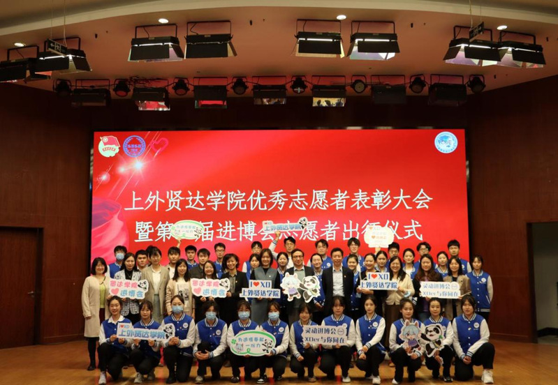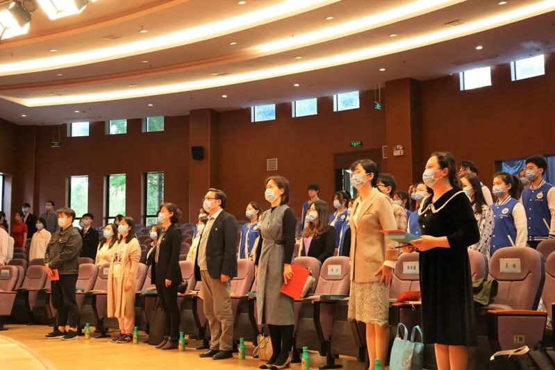 会议伊始,全体成员庄严起立,奏唱国歌。学生管理服务中心主任陈应老师为此次大会致辞。随后,校党委组织部部长陈琅玛老师宣读《关于表彰上外贤达学院2021-2022 学年春季学期校园疫情防控优秀志愿者标兵和优秀志愿者的决定》。各学院总支书记、副书记为优秀志愿者标兵代表和优秀志愿者代表颁发证书并合影留念。党委副书记王科老师为新葡的京集团第五届进博会志愿者服务队授旗。
