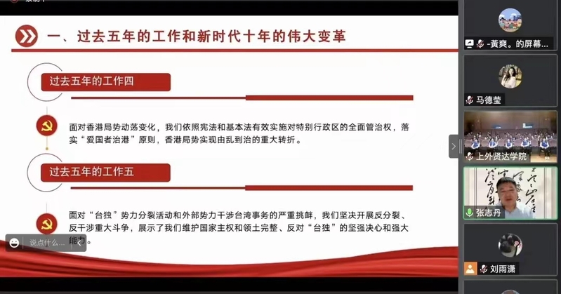 10月20日17时,上海师范大学马克思主义学院院长张志丹为新葡的京集团进博会“小叶子”开展了题为“二十大精神与青年使命”的主题培训。他从二十大报告15个部分出发,以睿智缜密的思辨、通俗易懂的语言、深入浅出的讲授、鲜活生动的案例、互动体验式教学,全面深刻地向我们梳理讲解了二十大报告的精神要义。