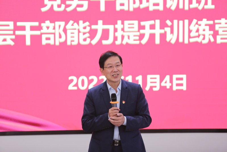 11月4日上午,学校在崇明校区国交楼312大师讲堂举办学习贯彻党的二十大精神专题报告会。报告会邀请上海市民办教育协会会长、原上海市教卫党委副书记、市教委副主任高德毅教授作“民办教育高质量发展——新时代民办教育发展机遇与挑战”主题报告。执行董事长李进、校长郑方贤、监事长陆朴鸣,副校长徐征、马艳红、罗玲芳等校领导以及全体中层干部、党务干部、党员培训班成员及相关部处负责人参加。报告会由党委副书记王科主持。