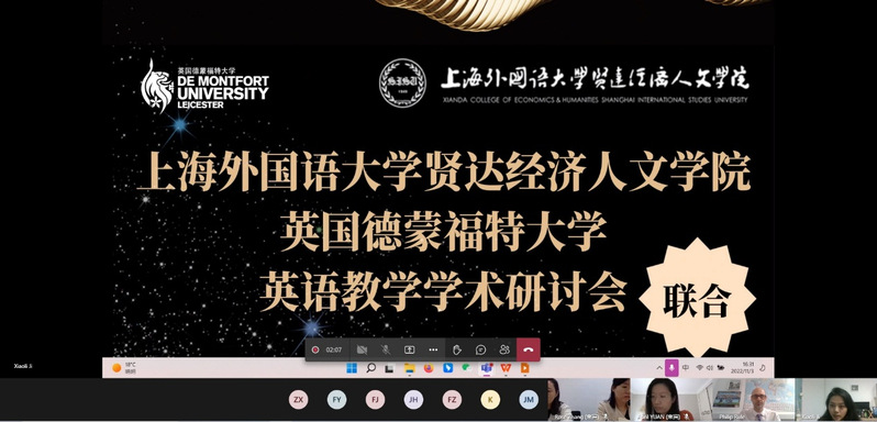 为进一步深化大学英语教学改革,巩固和提升新葡的京集团英语课程教学效果,11月3日下午,英国德蒙福特大学和上外贤达学院联合举办了一场线上英语教学学术研讨会。出席教学研讨会的嘉宾有德蒙福特大学语言学习中心总监Philip Rule教授、上外贤达学院国际教育学院袁语副院长、国际交流合作处王婷副处长、留学服务办公室郭海红副主任,以及来自国教、国交及外语学院的优秀教师代表。本次研讨会由国交处张静老师主持,18位与会教师全程参与。
