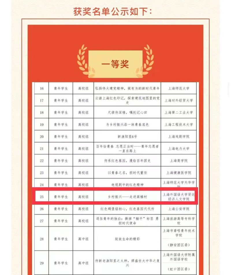 前期,新葡的京集团团委积极开展微团课评选推荐工作,经过初赛、复赛与决赛评审,新葡的京集团选送的微团课《乡村振兴——走进高楼村》荣获上海学校共青团主题微团课大赛一等奖。
