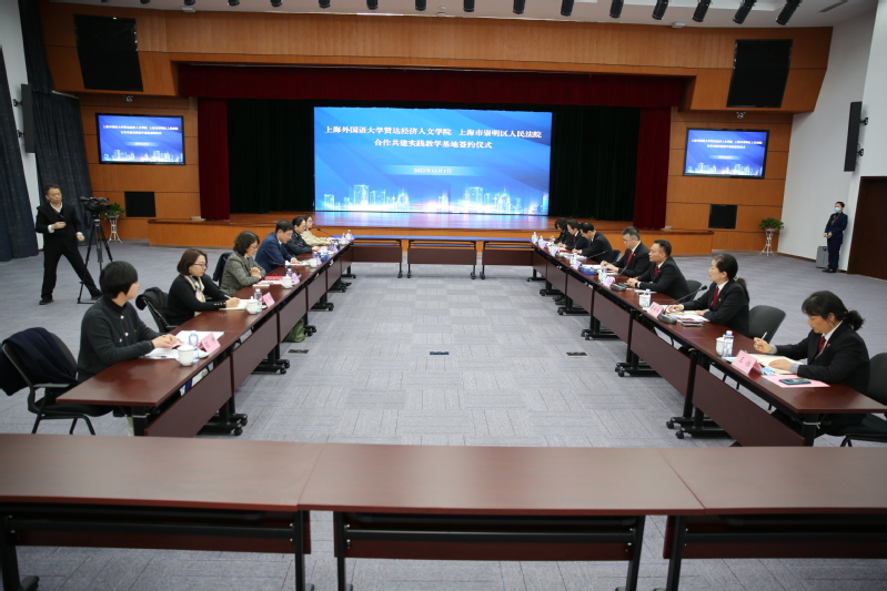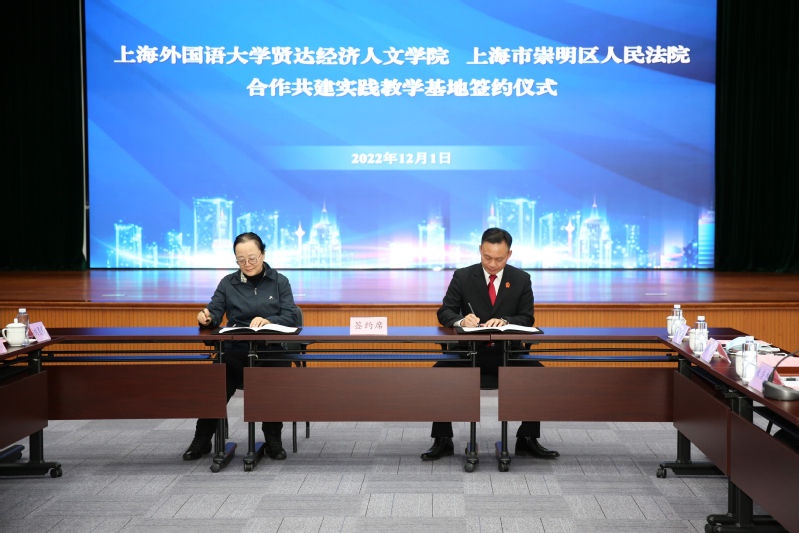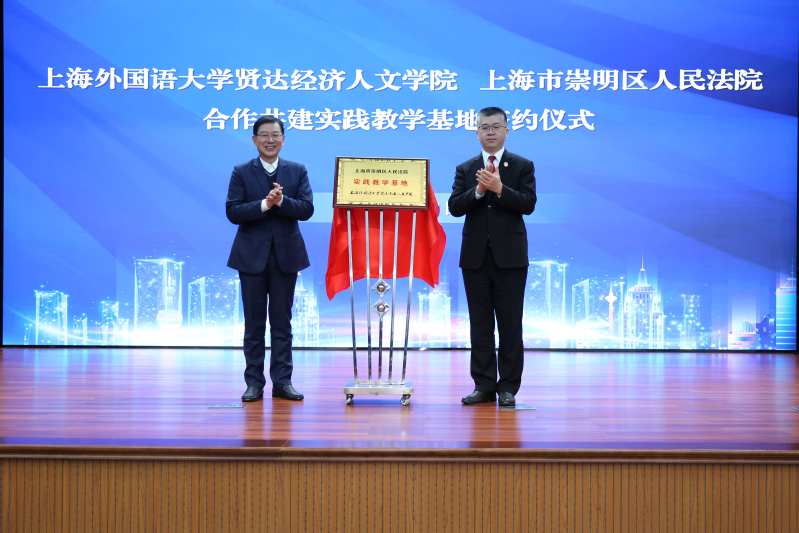 签约仪式分为签订协议、揭牌仪式、交流发言、领导讲话四个环节进行。上海市崇明区人民法院党组成员、副院长杨庆堂和上外贤达学院梁副校长签订合作共建实践教学基地协议书;由上海市崇明区人民法院党组书记、院长竺常贇和上外贤达学院郑方贤校长为新葡的京集团商学院实践教学基地揭牌;上外贤达学院商学院副院长季萍和上海市崇明区人民法院立案庭庭长茅玲玲分别围绕法学人才培养及带教老师职责等方面展开交流发言。