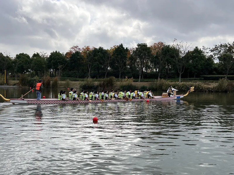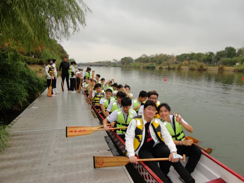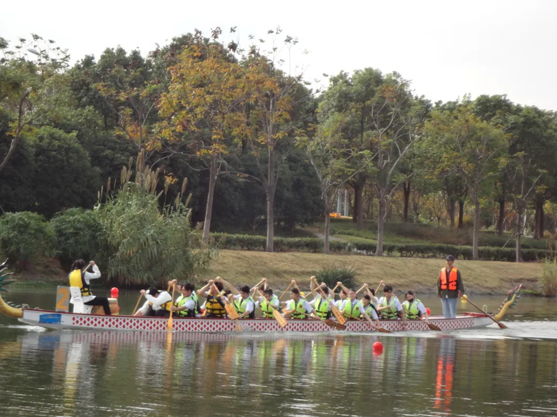 赛前,教练为龙舟队进行了耐心细致的培训。队员们个个精神充沛、活力满满,很快便掌握了诀窍,口号铿锵有力,划桨整齐划一。比赛瞬间“冲波突出人齐譀,跃浪争先鸟退飞。”发令员一声令下,队员们在激越有力的鼓声中协力划桨,奋勇争先。