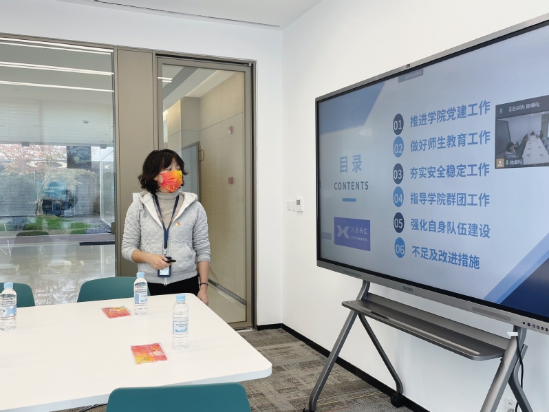 此次述职评议会采取书面述职+现场述职的方式。艺术与传媒学院、外语学院、商学院、国际交流学院、教育学院、国际教育学院的党组织书记以及机关党总支书记对照述职评议重点内容在会上通过PPT汇报展示的形式就各自履职尽责的情况进行了现场述职,并接受党委的评议。各二级学院党组织副书记均进行了书面述职。