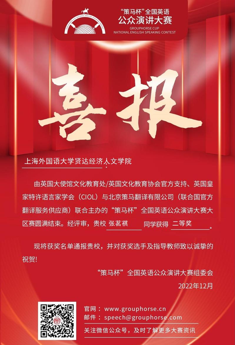 潮起海天阔,扬帆正当时。在如此高规格、高水平、高标准的竞争中,张茗祺同学攻坚克难、脱颖而出,可喜可贺!