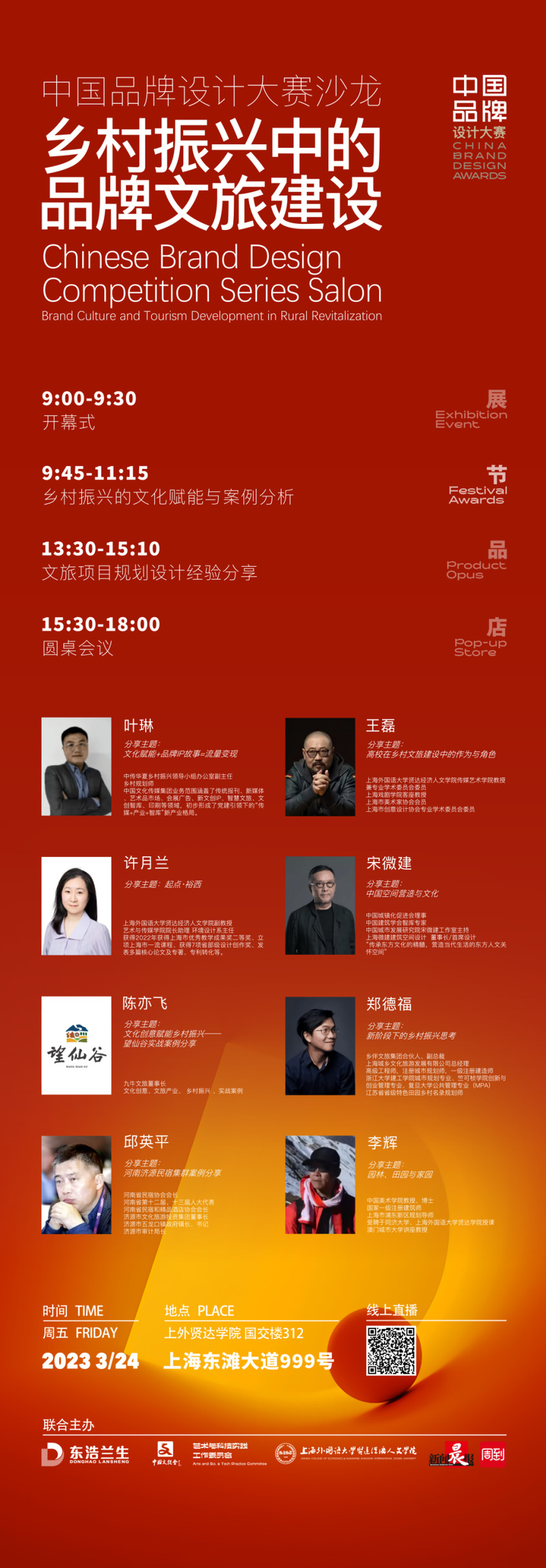 一场头脑风暴正急速酝酿,一顿饕鬄盛宴即将奉上!创意设计如何赋能中国品牌?品牌文旅如何助力乡村振兴?高校在乡村文旅建设中有哪些作为?届时,来自国内外乡村文旅领域的企业家、国内外高校相关领域的教授、以及相关领导和嘉宾齐聚一堂,共话创意设计,述说品牌故事,展现“文旅建设”,助力“乡村振兴”,分享典型案例,绘制新阶段发展蓝图。