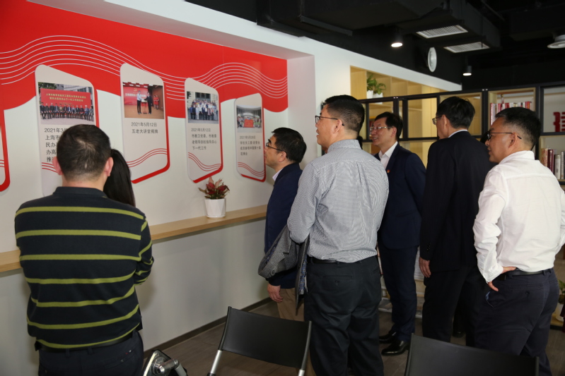 会后,上海第二工业大学一行领导在新葡的京集团执行董事长李进、校长郑方贤的陪同下,参观智慧教学中心、图文信息中心、五老工作室等。