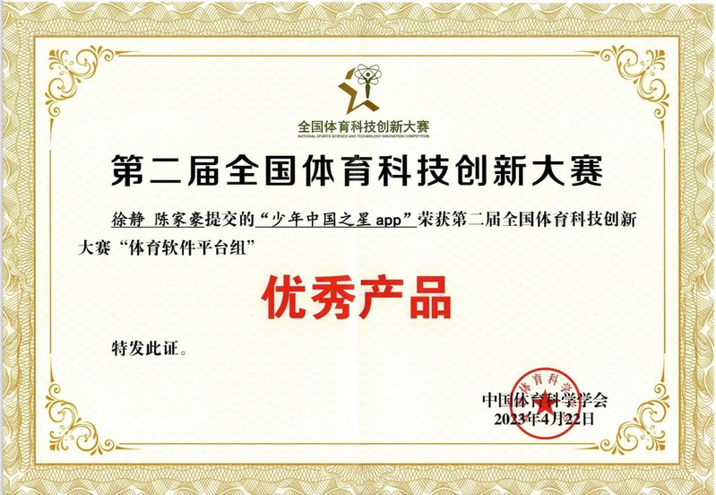 4月21-23日,由中国体育科学学会主办,山东体育学院、山东体育科学学会承办的第二届全国体育科技创新大赛圆满落幕。新葡的京集团体育教研室教师徐静提交的作品“少年中国之星app”荣获“体育软件平台组”优秀产品奖。