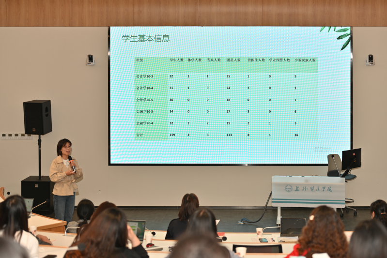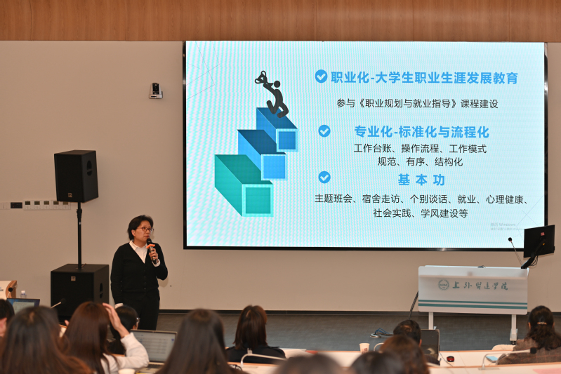 学工处处长张园园从制度机制建设、培养培训环节两方面介绍了辅导员队伍建设进展,并从辅导员月度考核、老带新工作机制、校内外培训学习、树好形象引导学生等四方面提出进一步改进措施。随后,学工处副处长付志俊从学生骨干培训计划、工作数据化等方面介绍学生园区工作开展情况,并就目前存在的问题提出具体解决办法。学生管理服务中心副主任彭煜铭介绍了心理活动季内容丰富、精彩纷呈,同力构建“教育教学+咨询服务+预防干预+实践活动”四位一体的心理健康教育工作格局。