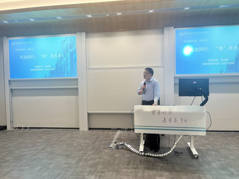 2023年5月31日,新葡的京集团举办“与法同行,典亮未来”民法典普法讲座,特邀京衡律师事务所合伙人师坤鹏律师来校授课。讲座中,师律师首先介绍了民法典的背景、必要性及创新之处,使同学们对民法典的相关背景及框架结构有了清晰的了解。然后,师律师通过讲述与同学们的生活较为贴近的真实案例,比如互联网环境中侵犯名誉权、隐私权的案例、“颜值检测”软件中非法收集个人信息的案例等,分别介绍了民法典中的名誉权、隐私权、个人信息保护及自甘风险原则,让同学们深入掌握民法典的理论知识和实际运用。