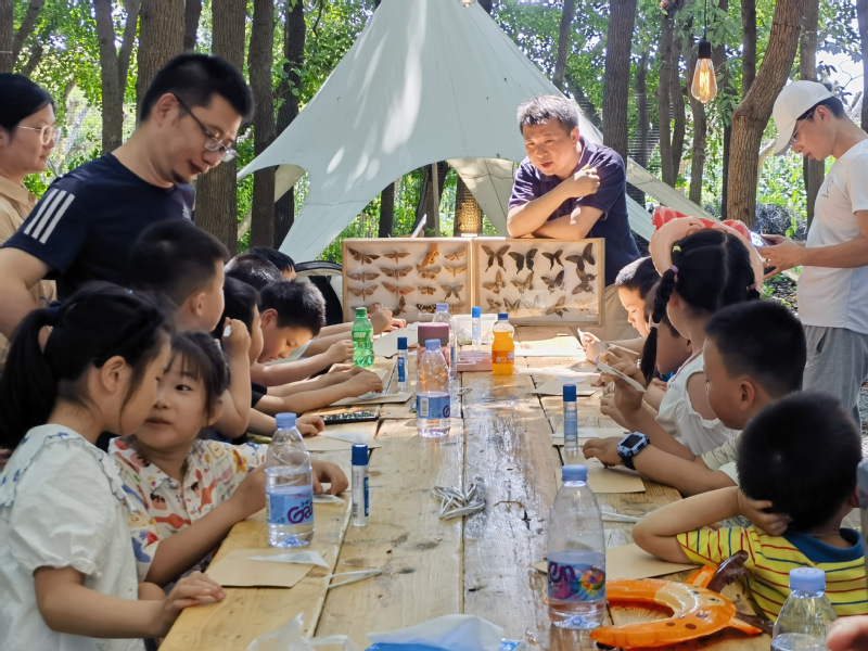 此次活动主要分为:“小丑先生”游戏互动、“树屋工坊”水粉绘画、“精灵之友”标本制作、“魔法鸟屋”鸟屋制作四个环节。“小丑先生”带领小朋友、大朋友们一起玩套圈圈、拔河、猜字谜等游戏。让原本不熟悉或不认识的大家,很快都融入到一起,欢乐起来。“树屋工坊”——孩子们通过彩笔和画纸,发挥自己的想象力,绘出心中的精灵部落,与家长或其他小伙伴一起合作完成,增强彼此团队合作意识。“魔法鸟屋”——在专业绘画老师的指导下,孩子们绘制自己心目中的小鸟屋。邀请森林小鸟来安家,培养孩子们更好地爱护自然的观念。“精灵之友”——孩子们跟随专业生物老师,一起寻找和发现蝴蝶的踪迹,了解它们的生活习性和生态环境,解锁生物奇观奥秘。