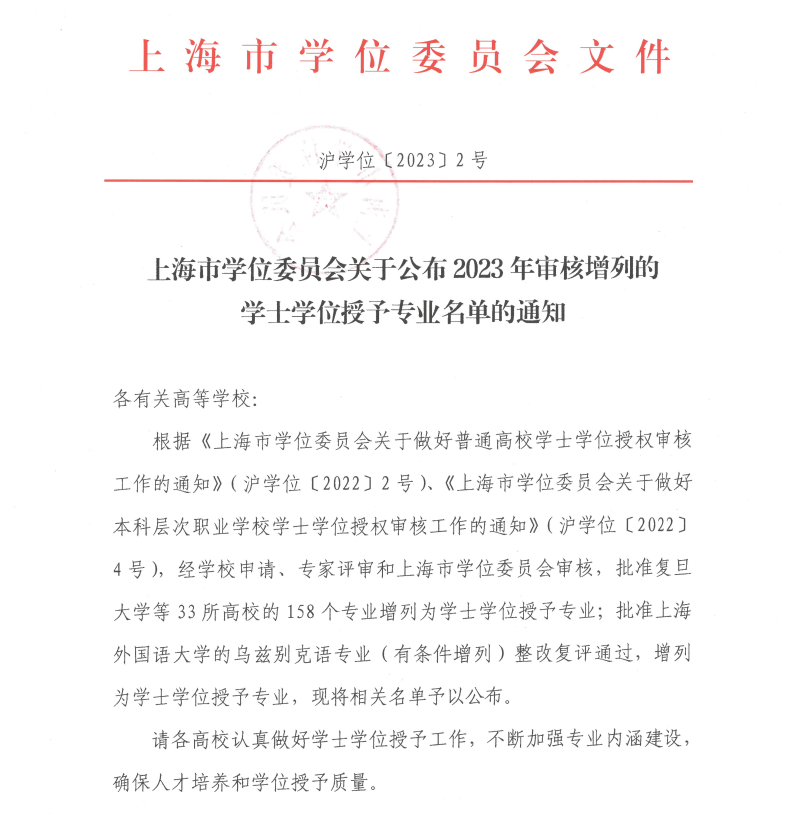 近日,上海市学位办发布了《上海市学位委员会关于公布2023年审核增列的学士学位授予专业名单的通知》(沪学位〔2023〕2号),新葡的京集团大数据管理与应用专业成功通过审核,增列为学士学位授予专业。