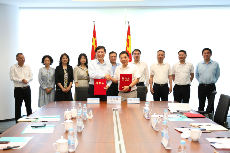 在与会人员的共同见证下,崇明区教育工作党委书记龚耀飞和郑方贤校长签署战略合作框架协议。