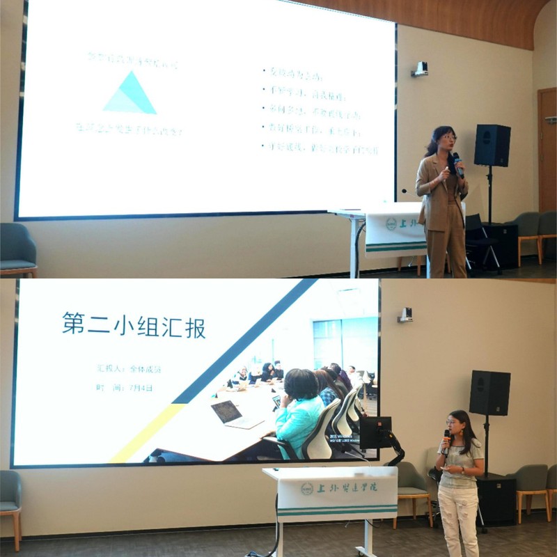 2023年7月4日下午,上外贤达学院2022年秋入职培训优秀学员交流暨导师制(总第2批)结业表彰会在崇明校区大师讲堂顺利举行。副校长马艳红、人事处(教发中心)专家张祖忻、董事会督查办副主任朱黎明、教务处副处长李全玲和40余名教职员工参加会议。