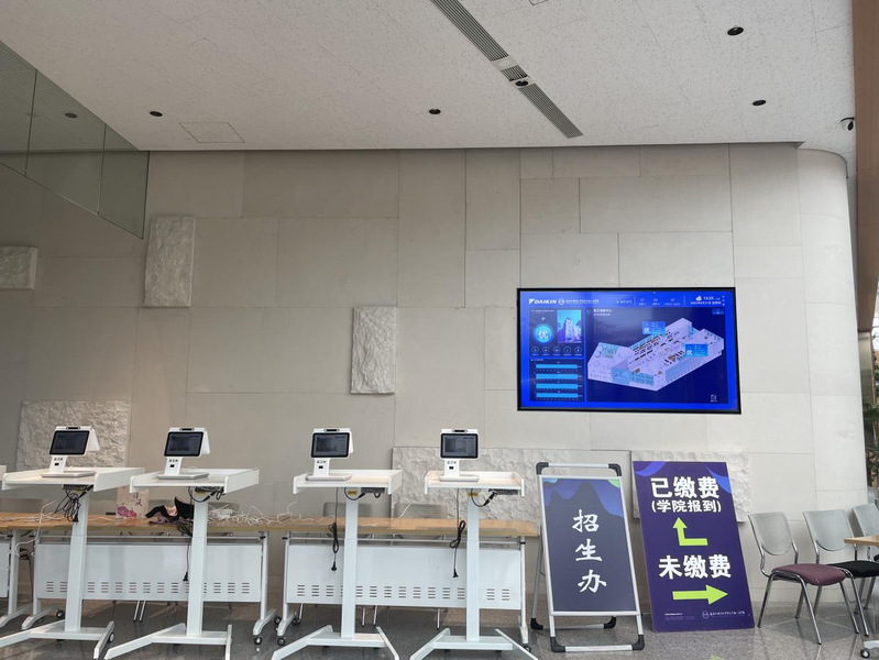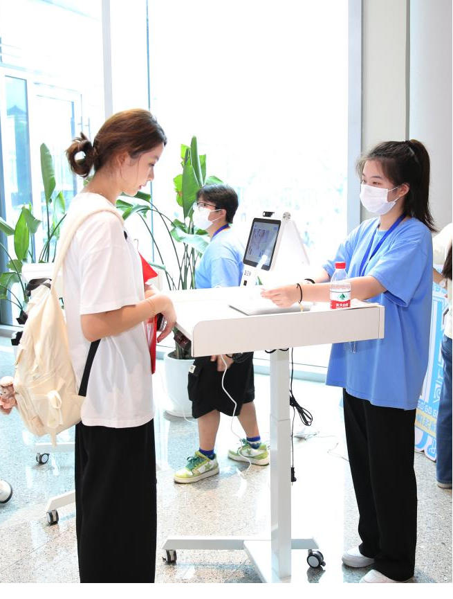 今年,学校仍然采取简化报到流程,依托“数字化迎新”平台,让新生到校前通过线上多种方式填报个人信息,完成线上报到和缴费。报到现场,只需要通过一个小小的数字电子屏,新同学在完成人脸识别的同时便可实现报到登记和个人信息的查验。各个学院的老师和志愿者们轻车熟路地完成身份验证、查验通知书、学费收缴等工作极大提高了报到效率,受到了新生和家长的好评。