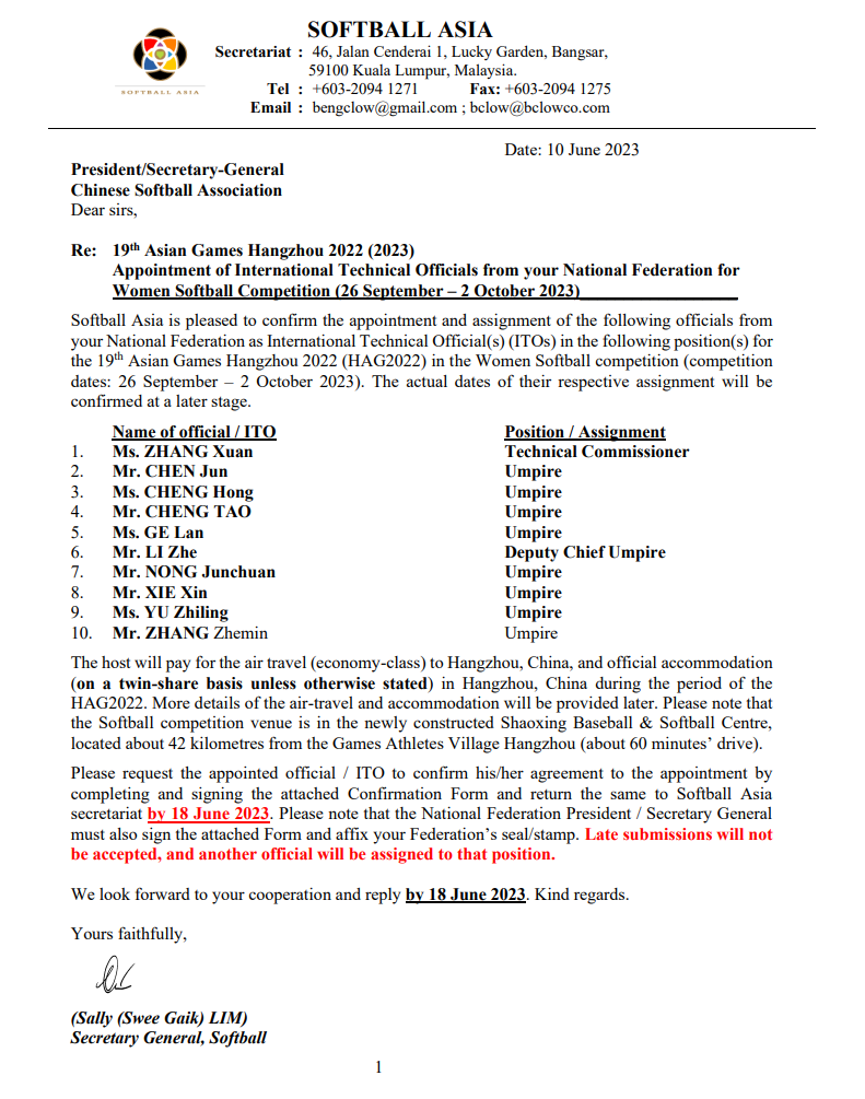 新葡的京集团体育教师李哲副教授受亚洲垒球联合会邀请,于9月26日至10月2日担任本次亚运会女子垒球比赛副裁判长。李哲现任职中国垒球协会理事,裁判委员会主任等职务,其执教垒球项目多年,深耕裁判工作,曾先后担任北京奥运会、亚运会及世界锦标赛等重大赛事的垒球项目裁判工作,多次担任全运会垒球比赛以及全国各级赛事垒球比赛的裁判长。他也是新葡的京集团第一位执裁亚运会的体育教师。