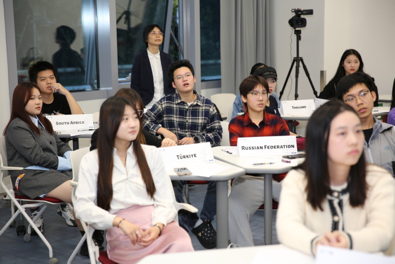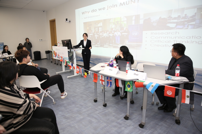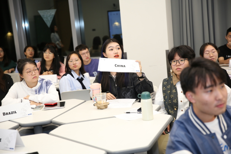10月19日晚,新葡的京集团首次模拟联合国大会在国交大楼113教室成功举办,议题为“全球战略在食品本土化中的应用”。东华大学资深模联专家朱晨副教授、新加坡外教Chong Ten Wee受邀担任指导教师,东华大学模联队3名优秀学生主持会议,来自国际交流学院、外语学院的46名学生参会,另有十余名老师与学生入场旁听。