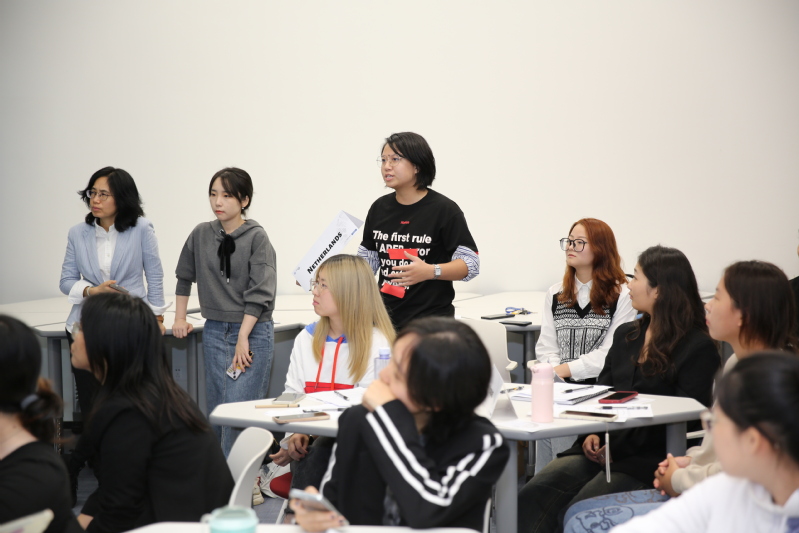 来自外语学院英语专业大三的段雨杕同学作为英国代表发言,其清晰的语言逻辑、纯正的英式发音为他赢得了阵阵掌声。国际交流学院优秀校友许韩卿同学也来到现场旁听,并在这一环节向英国代表同学提出了富有启发性的问题,在一次次头脑风暴中,现场爆发出阵阵热烈掌声。两位同学的精彩互动交流,生动展现了新葡的京集团学生的思辨能力与语言运用能力。