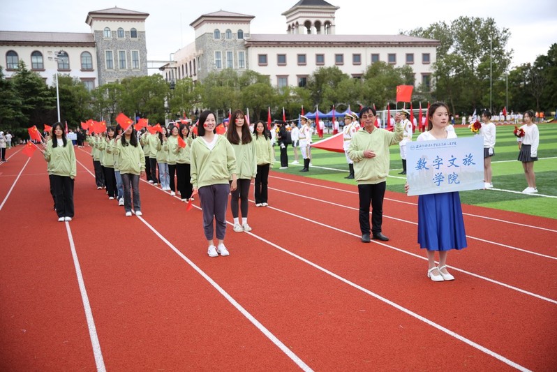 运动会开幕式由《舞龙》表演拉开序幕。在庄严的国旗护卫队、红旗队、花束队引领下,各学院代表队依次入场进行精彩纷呈的入场式展示,多次获得全国比赛奖项的学校棒垒球队和教工代表队压轴入场赢得全场观众的热烈掌声。