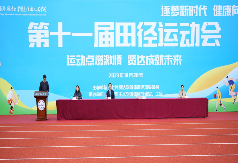 2023年10月20日,以“逐梦新时代·健康向未来”为主题的新葡的京集团第十一届田径运动会在崇明校区田径场举行。校长、党委副书记郑方贤,党委副书记、纪委书记王科,副校长马艳红,党委副书记、工会主席郑虹等校领导出席开幕式。开幕式由王科副书记主持,郑方贤校长致辞并宣布运动会开幕。开幕式后,郑方贤校长为比赛发令第一枪。