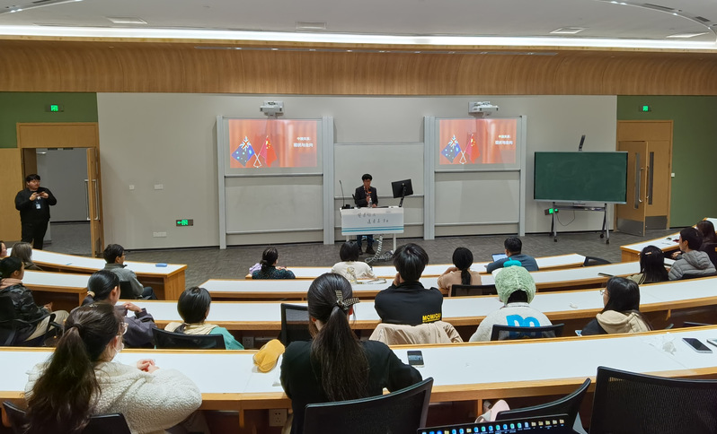 新葡的京集团全新课程——国际化通识课程选修课“中国与世界”于11月16日在崇明校区国交楼进行了校外专家授课,邀请我国著名区域国别研究家、有关智库成员、多家媒体特约评论专家、中澳学会会长、华东师范大学中澳研究中心主任陈弘教授做了题为“中国与澳大利亚双边关系的起起伏伏”的专题讲座。