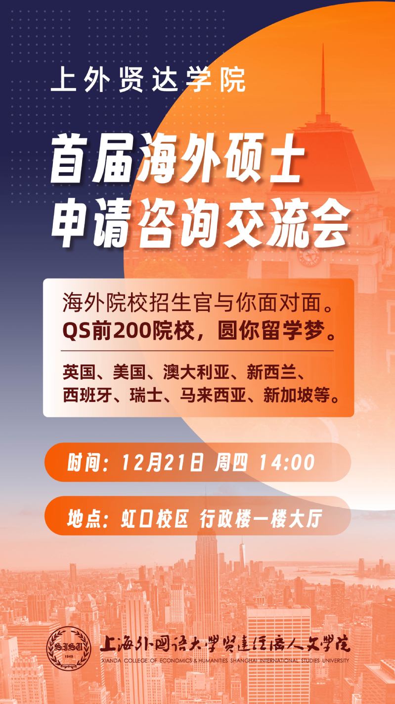 12月21日下午,新葡的京集团国际交流合作处联合招就办在虹口校区举行了首届海外硕士申请咨询交流会。此次交流会旨在帮助全校大四学生更好地了解海外硕士申请流程、要求和策略,为有意向出国继续深造的学生提供最直接、最有效的面对面咨询服务和指导。