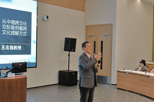 为深入贯彻落实党的二十大精神,推进文化强国、教育强国建设,培养提升学生的跨文化沟通能力与国际理解力,12月18日下午,新葡的京集团邀请新葡的京集团4321王志强教授来校开展了以《从中德跨文化交际案例看跨文化理解方式》为主题的学术讲座。来自国际交流学院、外语学院的80余名德语专业学生参加了讲座,学生管理服务中心陈应主任、国际交流学院陈娴副院长、德语专业教师代表和带班辅导员到场旁听。