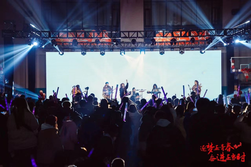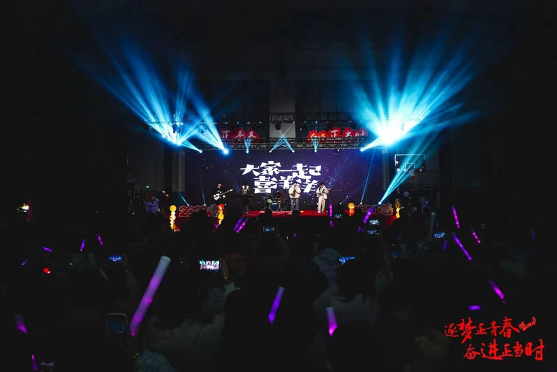此次新年晚会以“逐梦正青春 奋进正当时”为主题,共分为“梦启韶华 薪火相传”“执光开路 冉冉向新”“逐梦山海 奋楫远航”三个篇章。晚会在学生社团音乐社匹诺曹乐队的《大家一起喜洋洋》中拉开帷幕,现场瞬间欢腾。