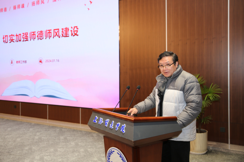 下午,党委王科副书记作了“切实加强师德师风”的报告。他提出,习近平总书记关于新时代加强师德师风建设提出的新要求,为培养高素质专业化师资队伍提供了根本遵循,必须深刻理解并贯彻落实好习近平总书记关于教师队伍建设的重要论述,坚持以师德师风建设贯穿始终,着力塑造追求教育家精神的“四有好老师”,为实现学校高质量发展提供有力支撑。2024年学校要开展“师德师风建设年”活动,着力在完善教师职业行为规范、制定相应考核办法、落实责任制主体管理、成立师德师风委员会;出台师德先进评选表彰办法等方面,多措并举、从严从实做好学校师德师风建设工作。
