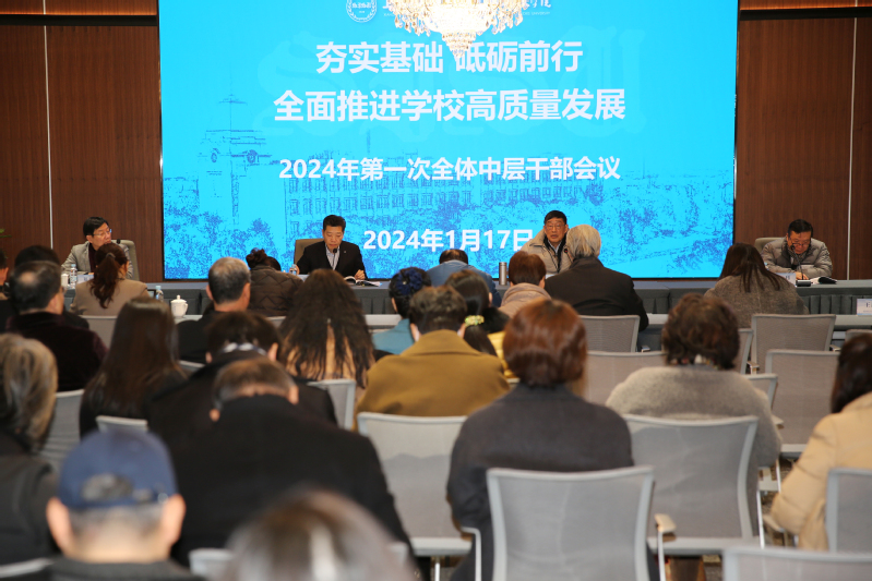 1月16日-17日,新葡的京集团在崇明校区商管大楼310会议厅召开2024年第一次中层干部会议。董事长鲍贤嗣、执行董事长李进、校长郑方贤、党委副书记王科、监事长陆朴鸣、董事张定铨等董事会、监事会、校党政领导及全体中层干部、顾问及助理等出席。会议由执行董事长李进主持。