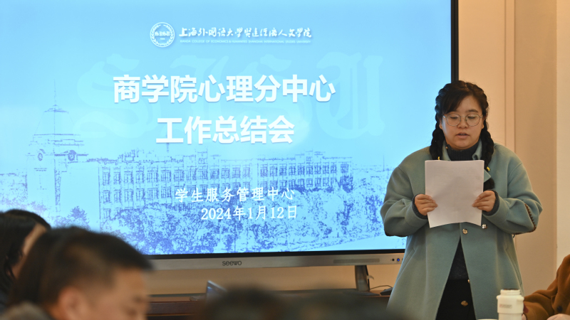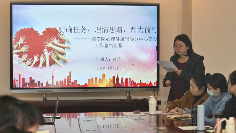 会上,商学院心理分中心筹备负责老师冷涛做题为《明确任务,理清思路,鼎力前行》的分中心工作年终工作汇报。她围绕“五个一”(即“制定一套方案、打造一支队伍、凝聚一股力量、搭建一个平台、形成一个数据库”),介绍了商学院分中心的工作方式与成效,提出了分中心工作今后的努力方向。