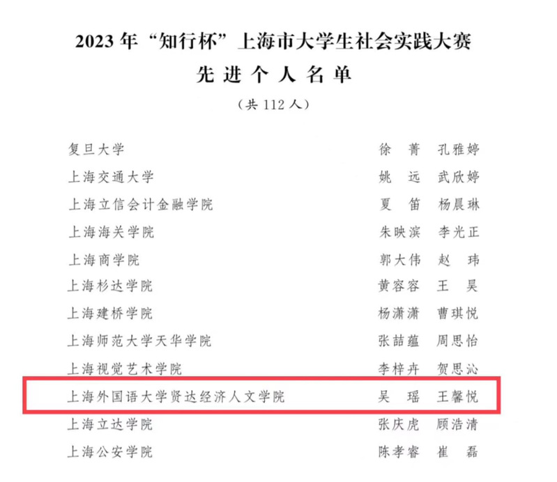 为引领广大青年学生深入学习宣传贯彻习近平新时代中国特色社会主义思想,全面贯彻落实党的二十大精神,深入贯彻落实习近平总书记关于青年工作的重要思想和关于教育的重要论述,帮助广大青年学生上好与现实相结合的“大思政课”,在社会课堂中 “受教育、长才干、作贡献”,坚定信念听党话、跟党走,在实践大课堂中学习新思想、争做好青年。2023年,团市委、市委宣传部、市教卫工作党委、市教委、市精神文明办、市人大社会委、市政协社法委、市学联联合开展了2023年 “知行杯”上海市大学生社会实践大赛。新葡的京集团师生积极响应将所学的知识应用到实践中去,通过实践来检验和深化理解,展现出了卓越的能力和务实的态度,在大赛中再次斩获佳绩。