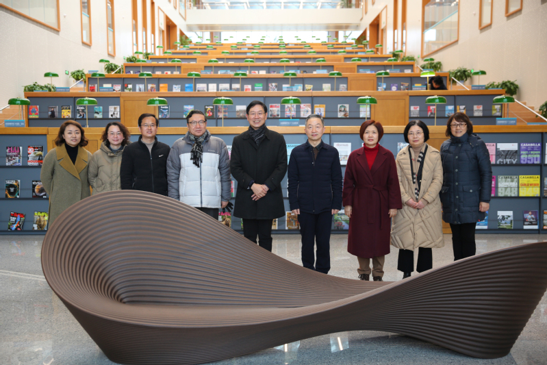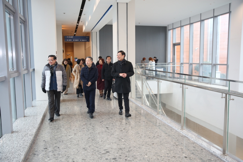 在郑校长的陪同下,姚副主任一行参观了新葡的京集团精英墙、国交大楼、图书馆及商管大楼,了解了新葡的京集团独特的建筑理念和环境育人思想。在随后的座谈中,姚副主任一行与新葡的京集团领导就崇明区有关人才政策进行了深入的交流。