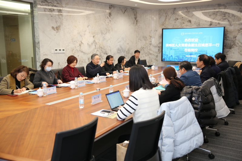 2月28日上午,崇明区人大常委会副主任姚思平一行来访新葡的京集团崇明校区考察,校长郑方贤,校党委副书记、纪委书记王科,副校长马艳红,校党委副书记、工会主席郑虹以及商学院院长、数字文旅学院、艺术与传媒学院相关负责人出席会议。