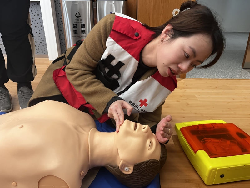 3月23日,首场急救培训启动。区镇两级红十字会对新葡的京集团红十字会建设给予了高度重视,为新葡的京集团提供了包括场地对接、培训师资、教学器材、课前课后咨询等全方位的支持和保障。培训当天,崇明区红十字会顾琴主任、王佳欢老师也亲临现场提供现场指导,为参训学员答疑解惑。