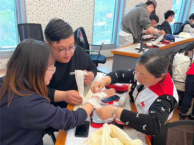今年伊始,上海市政府已将“培训8万名持证应急救护员”列入2024年为民办实事项目,由市红十字会牵头,市民政局、市卫健委、市教委、市应急管理局、市妇联等单位配合共同推进。作为一所立足崇明、坚持以学生发展为核心的多科性大学,上外贤达学院师生对急救培训表现出了极高的参与热情,他们渴望加入应急救护的行列。培训现场,同学们热情高涨,踊跃参与互动,在培训老师的指导下学习心肺复苏、自动体外除颤器的使用、气道异物梗阻处理及创伤救护知识,展现贤达学子积极担当的精神风貌。参训教职工也纷纷带头上前实操,以实际行动展现立德树人理念。首批118名参训师生全部通过考核,顺利获得红十字救护员证(初级),标志着新葡的京集团红十字急救培训工作的圆满开启。