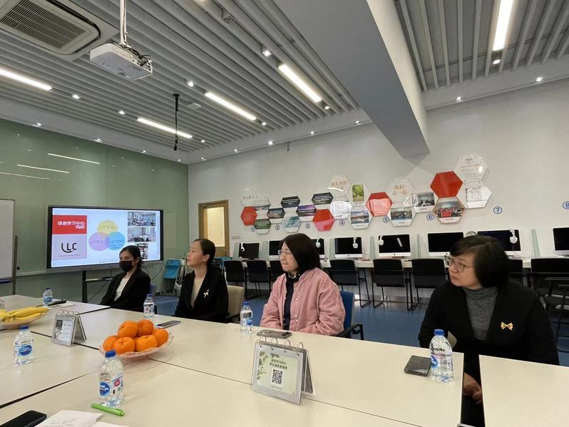 会后,范教授团队带领新葡的京集团来访人员参观语言学习中心的活动空间和配套设备,了解各种自主学习的模块。