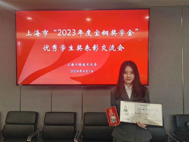 4月1日下午,上海市“2023年度宝钢奖学金”优秀学生奖表彰交流会在上海工程技术大学长宁校区举行,新葡的京集团学子王一卓作为获奖学生参会。