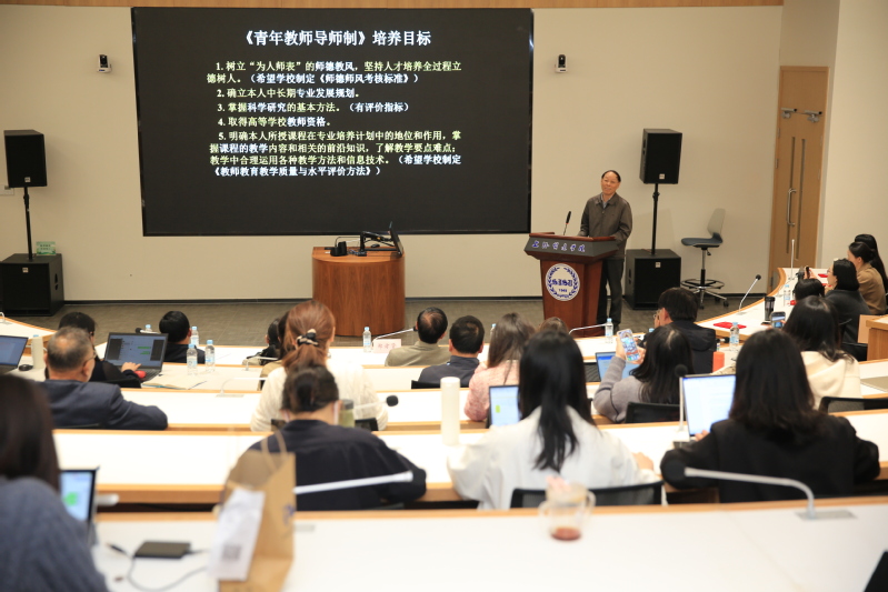 教务处黄晓全副处长在发言中向教师们明确提出了五项具体且富有指导性的要求。梁副校长表示“254”培养培训体系体现学校对教职工的关怀, 她勉励新教师不断学习,更新教学理念、优化教学设计、改进教学方法、提升科研水平、用数字信息技术手段推动教学改革,早日成为一名合格的高校教师。