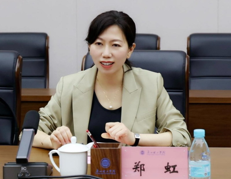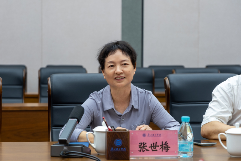 张世梅副校长热烈欢迎郑虹副书记一行的到来,并详细介绍了广州理工学院的区位优势、师资队伍、学生规模、学科建设和发展方向等情况。她强调学校的教学特色在于产教融合,包括专业与产业对接、创新实验班的建立以及应用型专业体系的构建。课程设置强调生产实践,科研成果也在积极反哺教学。张世梅副校长指出,广州理工学院与贤达学院在专业设置和发展模式等方面有许多相似之处,期待双方进一步深入交流、互相学习和借鉴有益的做法。