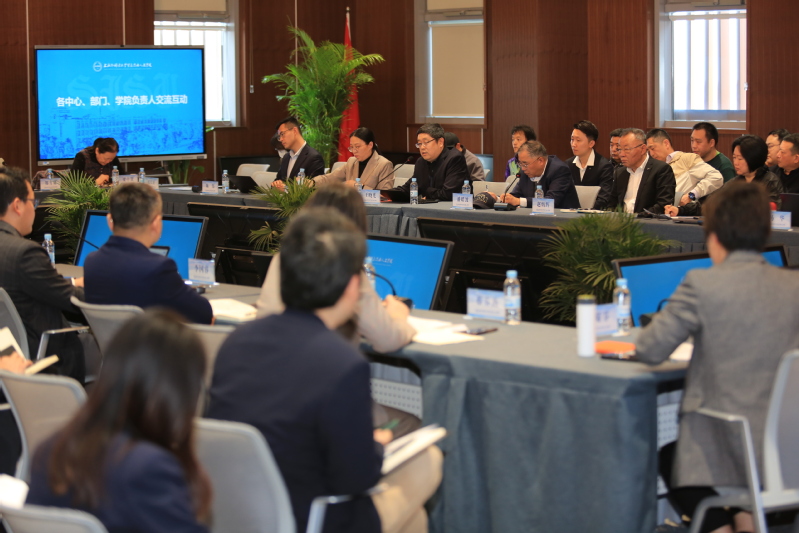 校领导们就实验室建设与管理、智慧校园建设、图书资源利用等方面提出了指导性意见。一要在充分调研的基础上做好顶层设计。以建设智慧校园为目标,围绕外语+、数字+、应用型、国际化四个特色,综合利用语言学习中心、图文信息中心,智慧教学楼,新文科实验教学中心等资源,构建集成智慧教室、智慧课堂、智慧教学的智慧教学中心,积极迎接人工智能带来的学习革命。二要建立信实中心、教务处与各教学单位间的联合沟通机制。各教学单位要以“每个专业规划建设一个市级实验教学示范中心工程”为牵引,充分利用13、15号楼空间布局,全面梳理实验室建设规划。同时,要以《上外贤达学院实践教学体系建设实施方案》为指导,大力推动校企合作,充分利用校外实践资源,做实项目制实验教学。三要进一步推进校园信息化建设。信实中心要适应大学治理体系现代化要求,突破原有界线,以人、财、物、事为管理要素,实施综合大平台建设,从而实现学生成长全生命周期管理的目标。在此过程中,应特别注重师生的用户体验,做到便捷、高效、安全。四要充分挖掘图书馆的空间与文献资源利用率,为师生提供更优质的学习与研究环境。