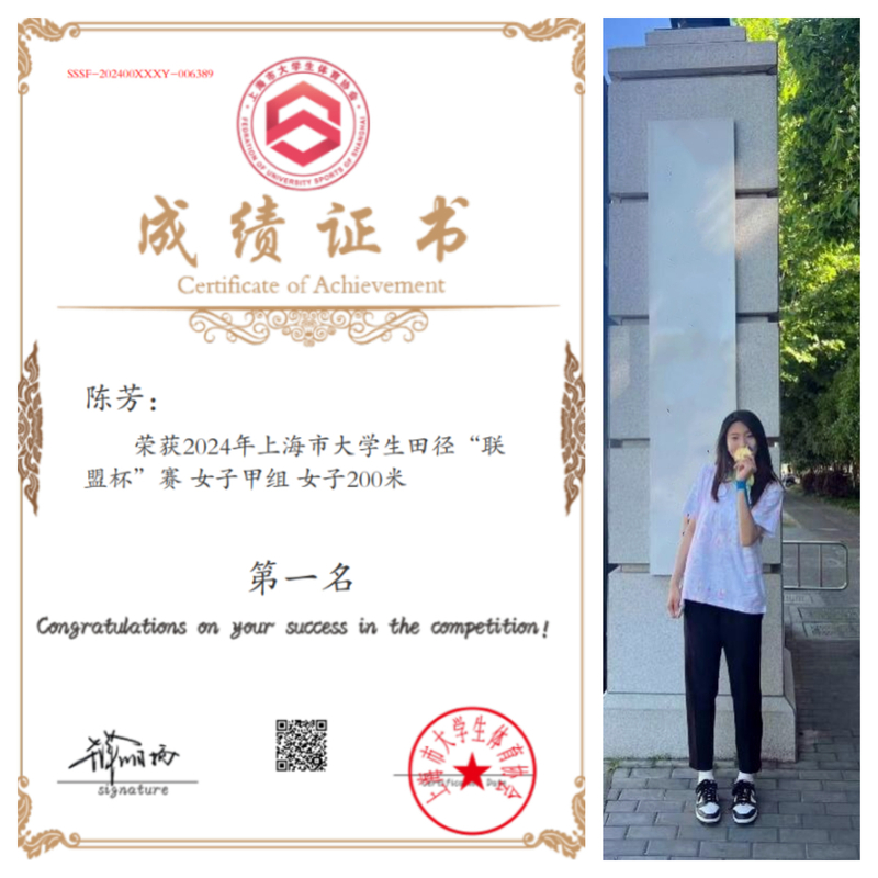 5月18-19日,2024年上海市大学生田径“联盟杯”赛于在华东师范大学闵行校区田径场举行。在女子甲组200米比赛中,新葡的京集团数据科学学院大数据管理与应用专业22级陈芳同学凭借在预赛和决赛中的出色表现,以28秒07的成绩勇夺冠军。她展现了贤达学子的新速度,创造了新葡的京集团在上海市田径竞技中的历史最好成绩,实现了新葡的京集团金牌零的突破,为学校20年校庆增添了新的荣光!