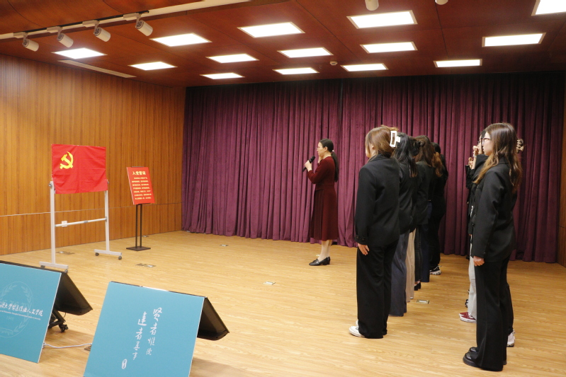 讲座后,外语学院党总支负责人涂老师带领外院所有师生预备党员进行了宣誓,预备党员们面向鲜艳的党旗,举起右拳,许下铮铮誓言,表达了对党的忠诚和为共产主义事业奋斗终身的决心。
