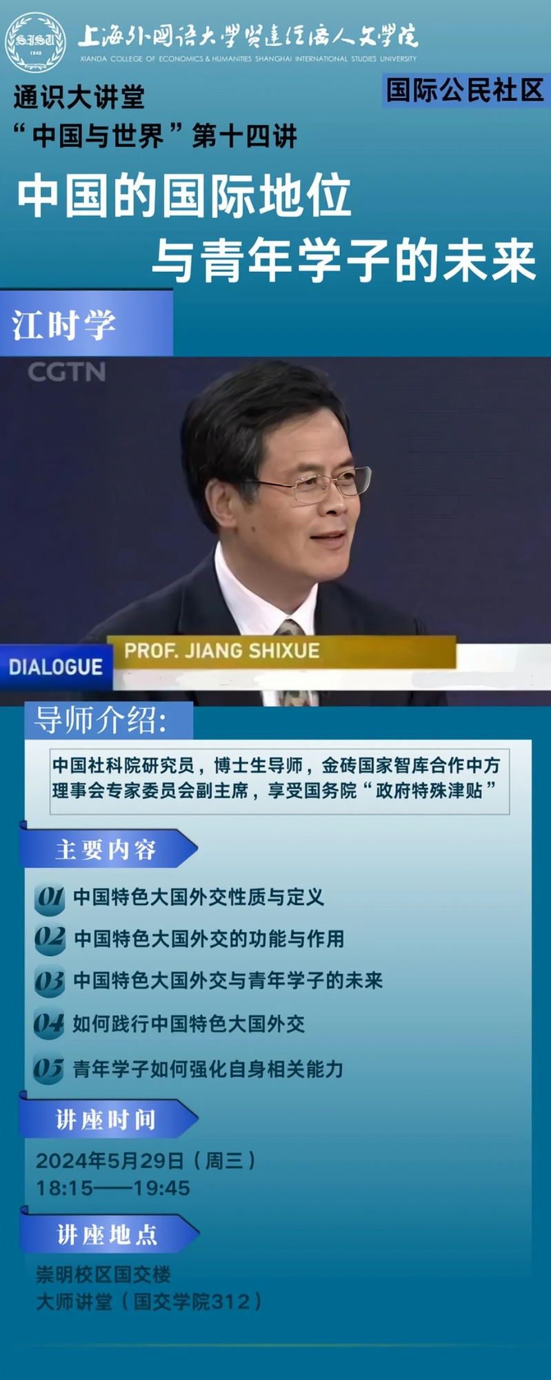 5月29日 江时学:中国的国际地位与青年学子的未来(通识大讲堂“中国与世界”第十四讲)