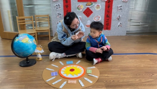 在寒假期间,秦雨同学积极报名参加寒托班的带班活动,组织开展新年活动和各类特色活动,通过讲述ppt和开展延伸活动——包春卷的形式帮助幼儿更好的了解二十四节气表,了解立春关于春牛和勾芒神的故事;同时协助学校创编了《一年又一年》的新年舞蹈,并录制成新春视频;为幼儿们讲述红包的来历并一起完成红包制作。
