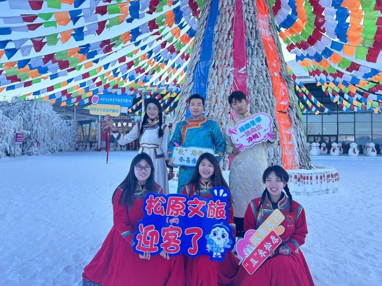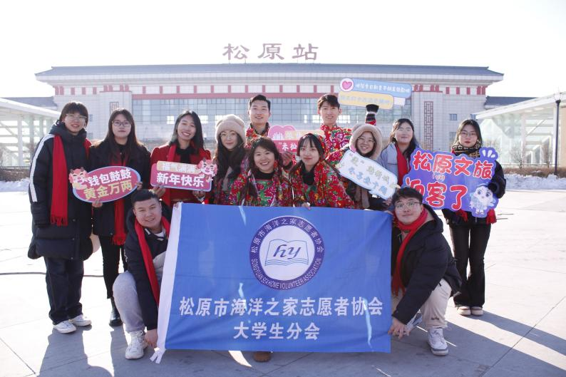在寒假期间,于航同学加入到松原市海洋之家志愿者协会大学生分会。这是一群由青年大学生组成的助力团,他们以文塑旅、以旅彰文,选取多处松原市经典景点为取景地,以快闪和变装的创意形式进行拍摄,在当地近零下二十度的天气下用灵动的舞姿燃烧着熊熊热情,讲述冰雪故事、展现东北热情,吸引了广大市民的关注,为家乡的冰雪文旅宣传贡献青春力量。
